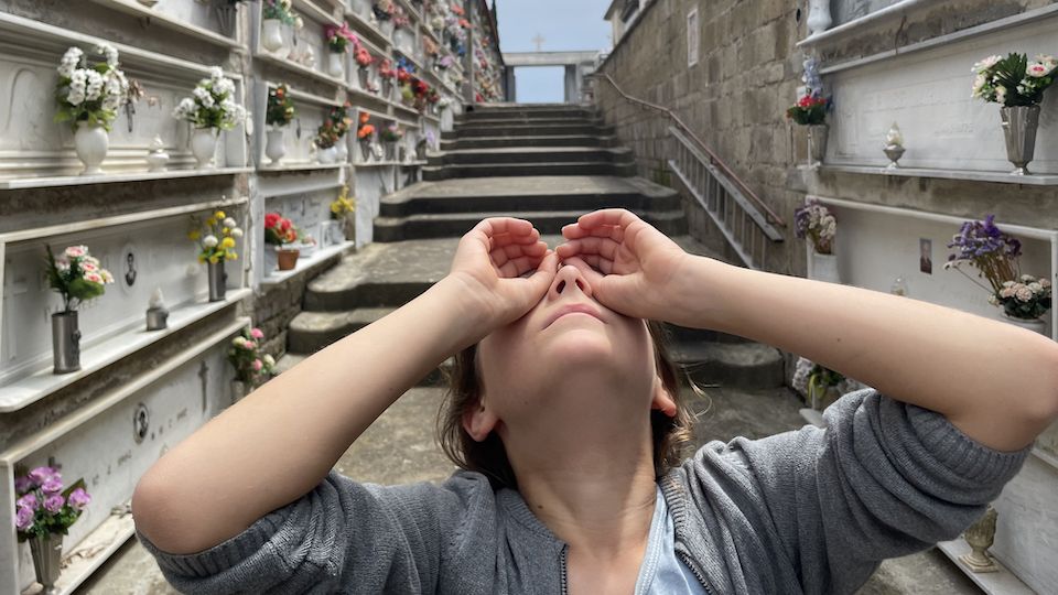 Rita, Rosaria e Nicola sono i protagonisti della vicenda, che trascorrono il loro tempo in un cimitero di paese. Nicola osserva tutto con il suo binocolo. Ad un tratto vede un’oca tra le tombe, ma le due ragazze non gli credono. Mentre il bambino percorre il cimitero alla ricerca dell’animale che sembra svanito nel nulla, le due ragazze si scambiano piccole confidenze. Alla fine i loro percorsi si uniscono, e si ritrovano insieme a cercare l’oca, in un tempo che diventa sospeso.